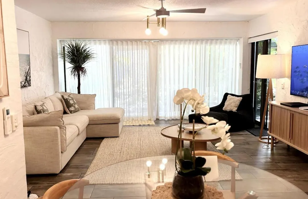 부엌뿐만 아니라 발코니, 발코니, TV도 모든 객실에 있습니다. 숙소에는 또한 2개의 욕실이 있습니다. Rainforest Paradise In The Palms 아파트에는 2개 침실이 있습니다.